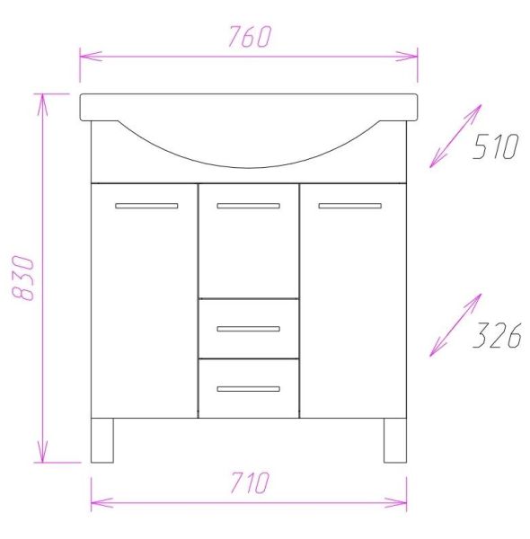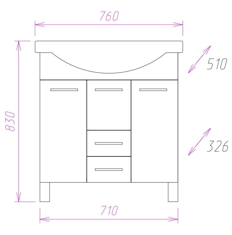 Размеры тумбы без учета раковины и ножек 71х33х68см.