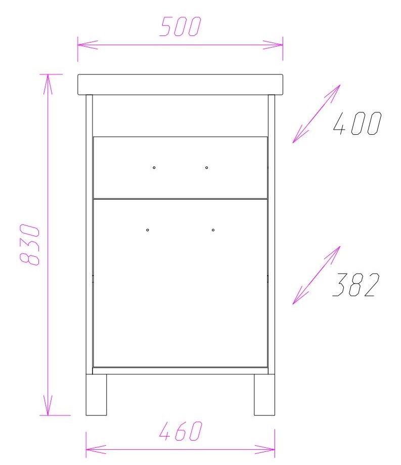 Размеры тумбы без учета раковины и ножек 46x38x68 см.