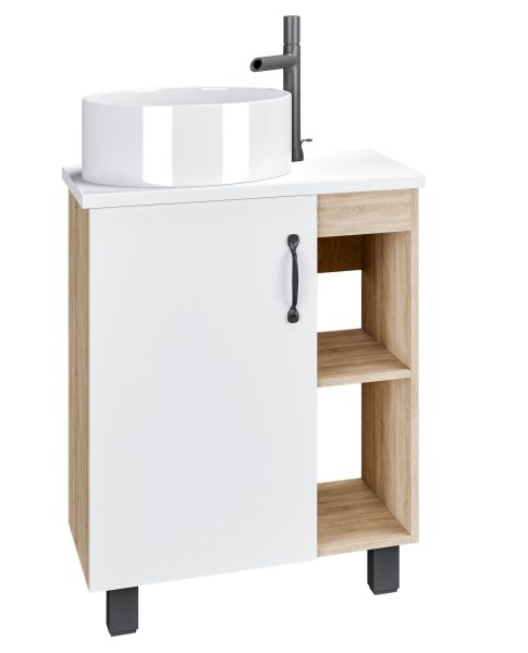 Тумба выполнена из ЛДСП, устойчивой к механическим воздействиям, перепадам температур и высокой влажности.