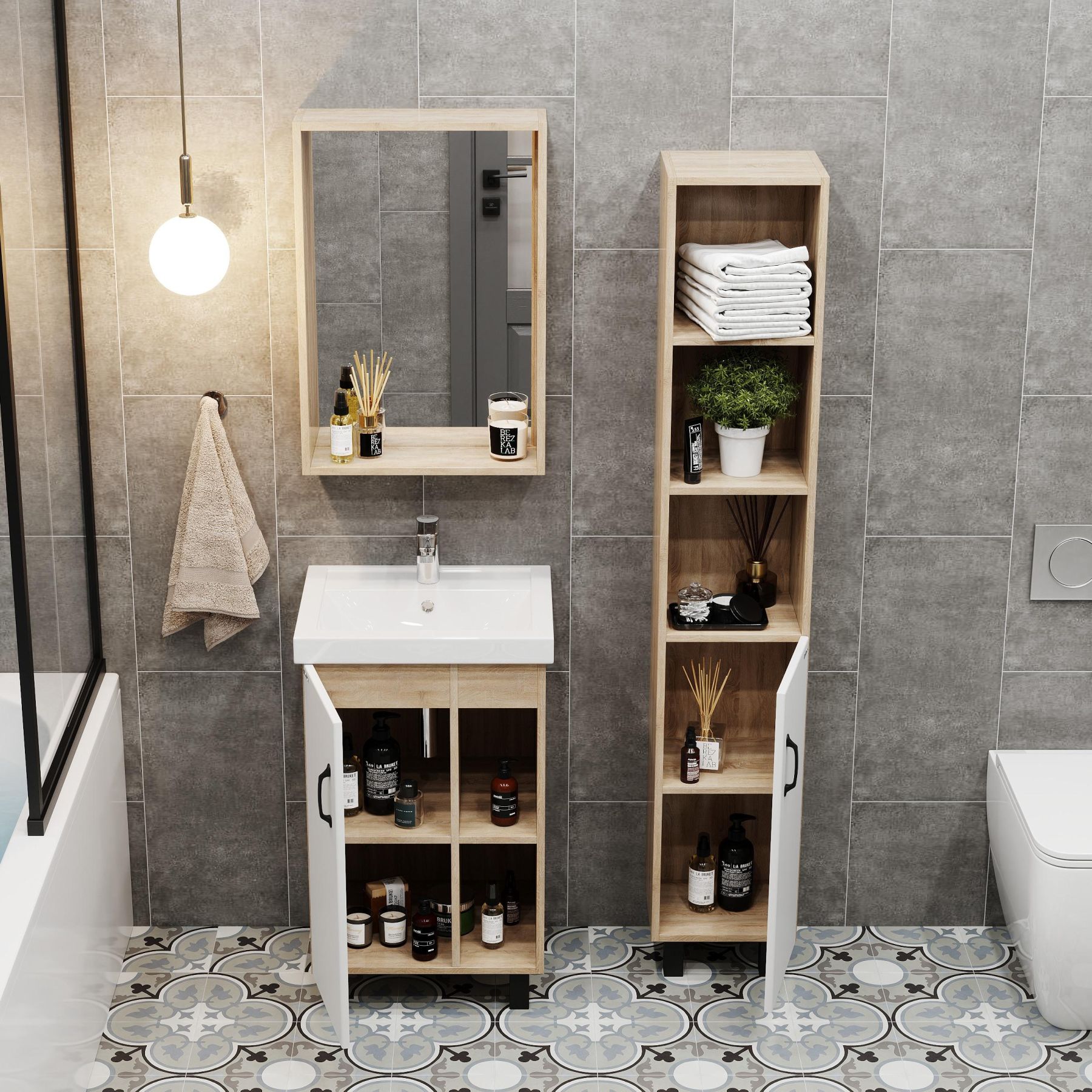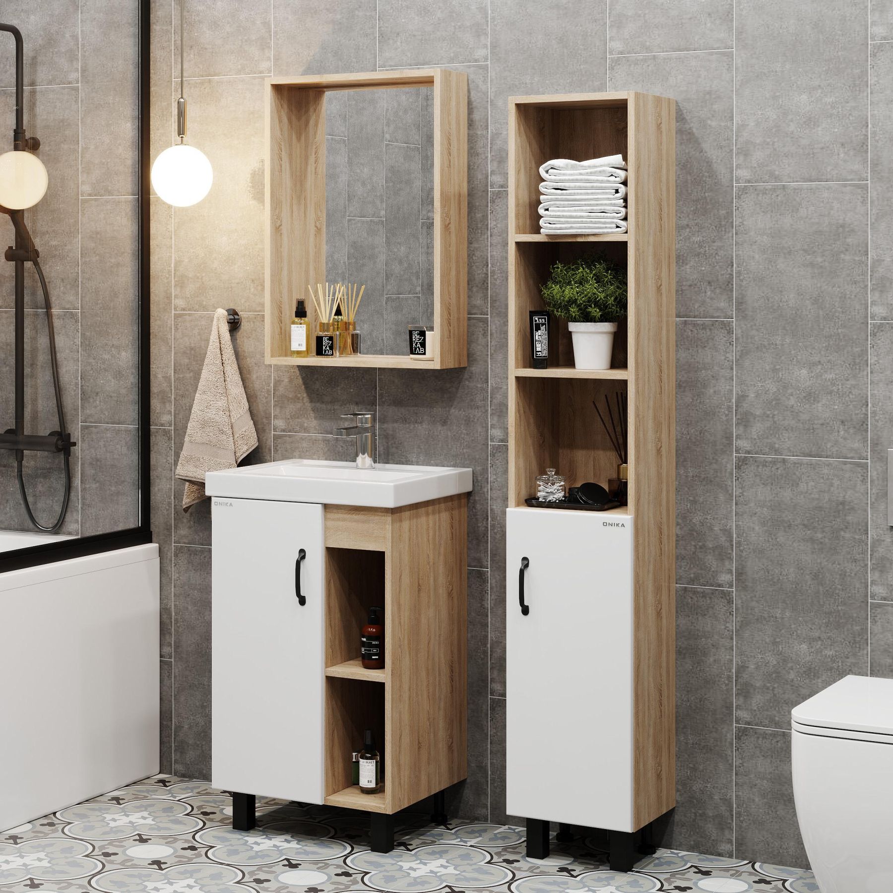 Напольная тумба под раковину Onika Тимбер 105034 50см белый матовый/дуб сонома купить