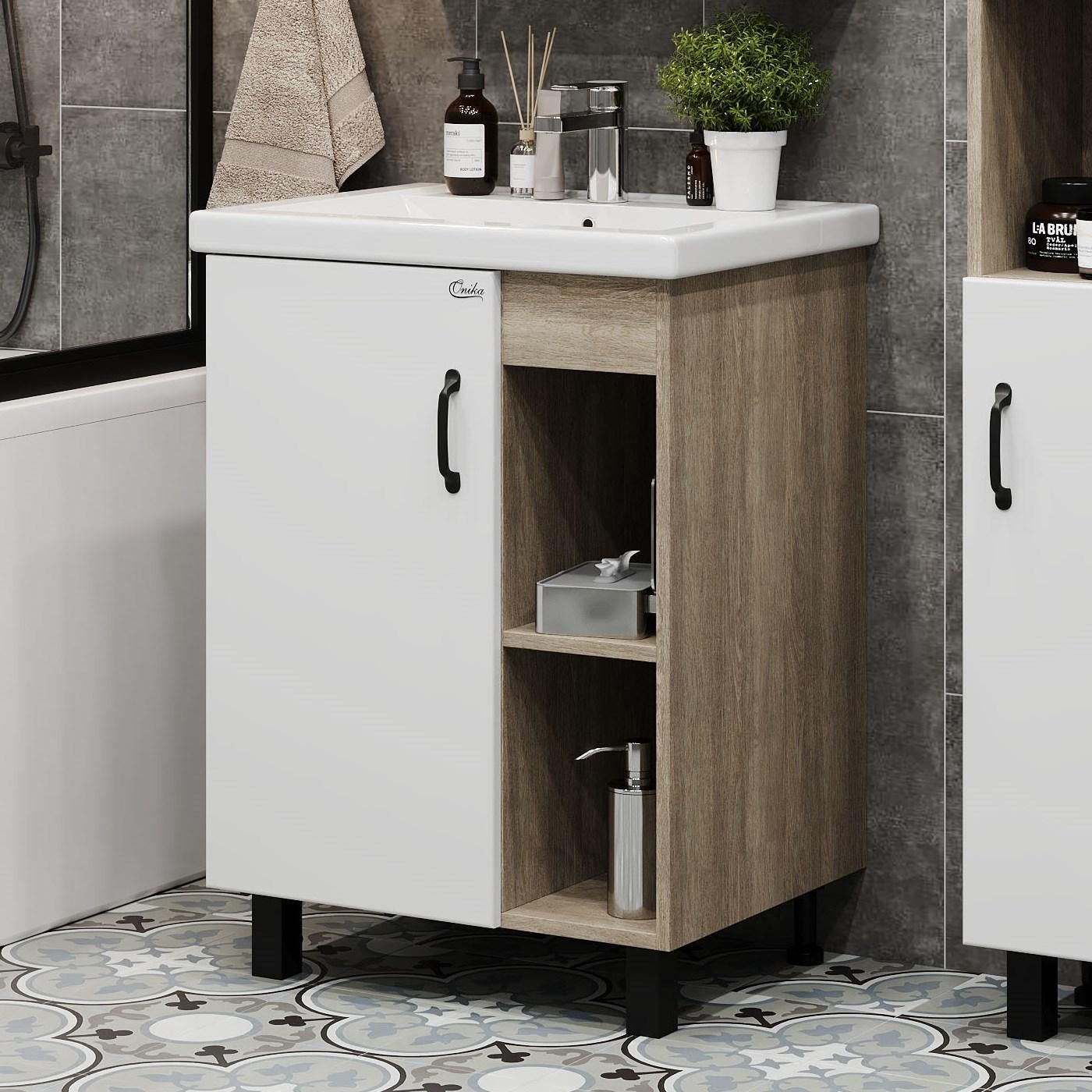 Напольная тумба под раковину Onika Тимбер 106140 60см белый матовый/дуб сонома купить
