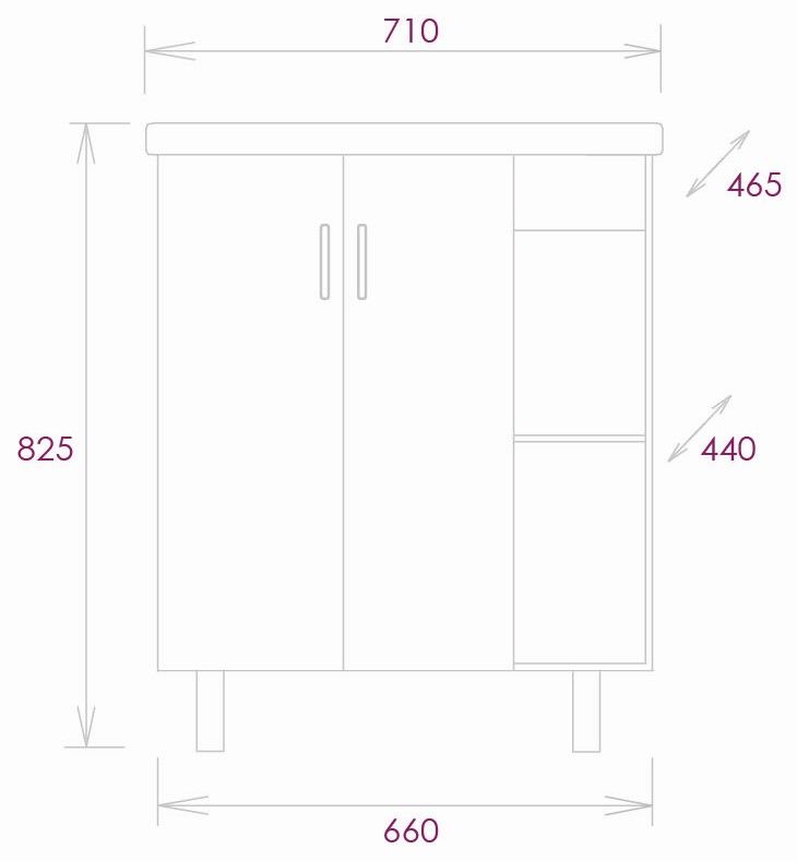 Размеры тумбы без учета раковины и ножек 66x45x68 cм.