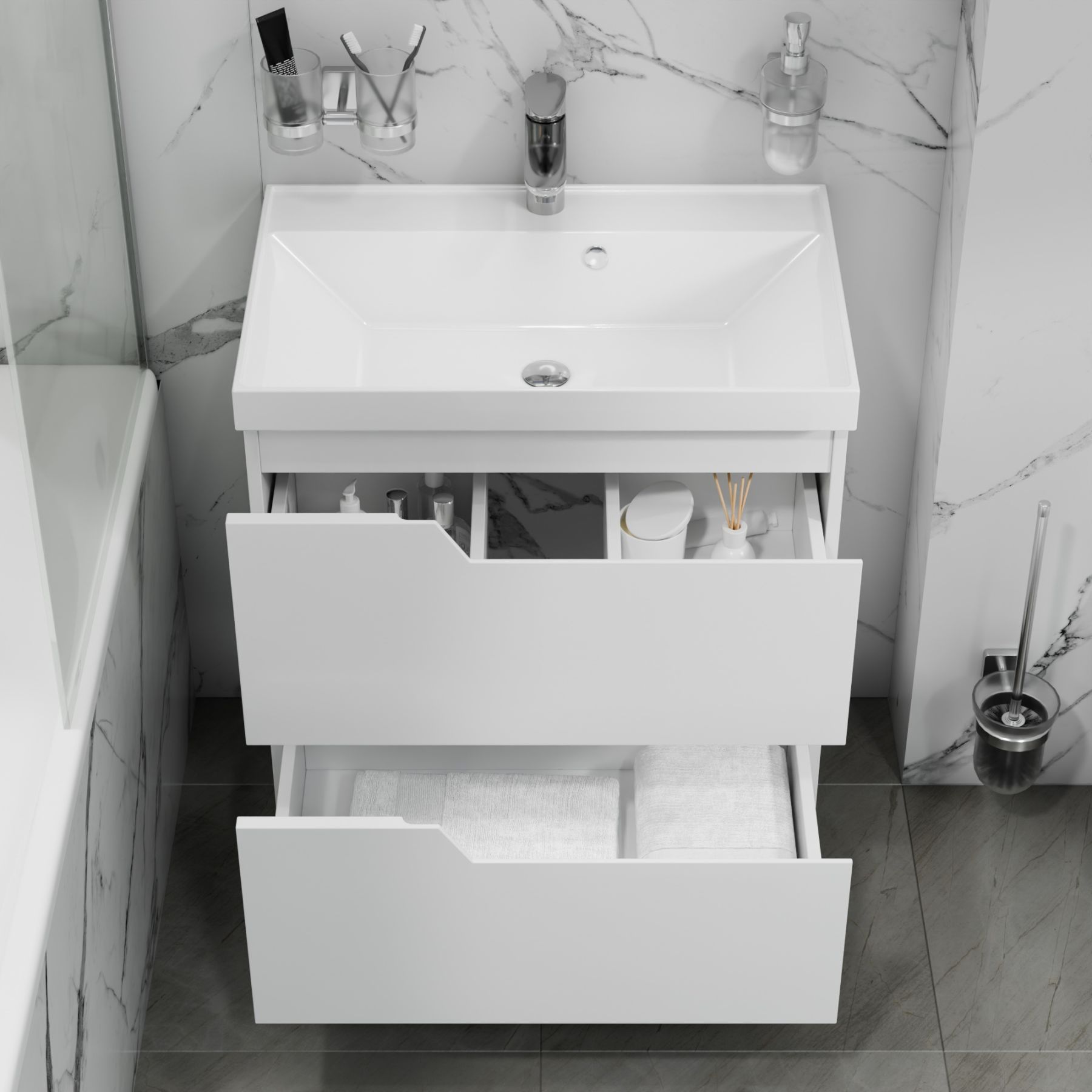 ·        Универсальность установки: Выберите вариант, который идеально подойдет для вашей ванной – напольная или подвесная тумба