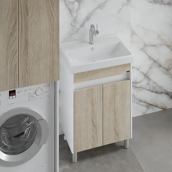 Тумба напольная Санта Мира 60 — это элегантная и функциональная мебель для ванной комнаты, которая станет отличным дополнением к любому интерьеру. Она изготовлена из ламинированного влагостойкого ДСП, что гарантирует её прочность и долговечность. Светлый цвет тумбы позволяет ей гармонично вписаться в любое пространство. Тумба Мира 60 изготовлена под фаянсовый умывальник Sanita Fest 60.