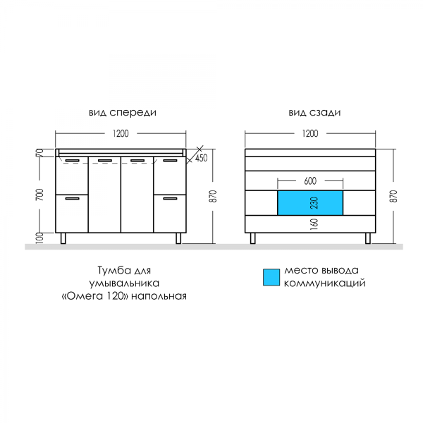 Тумба напольная Омега 120 для умывальника Sirius 120. Корпус изделия и фасад выполнен из МДФ. Фа... Подробнее