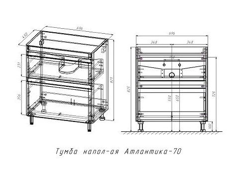 Тумба под раковину Style Line Атлантика 70, СС-00002344, 70 см, напольная, Люкс Plus, ясень пер... Подробнее