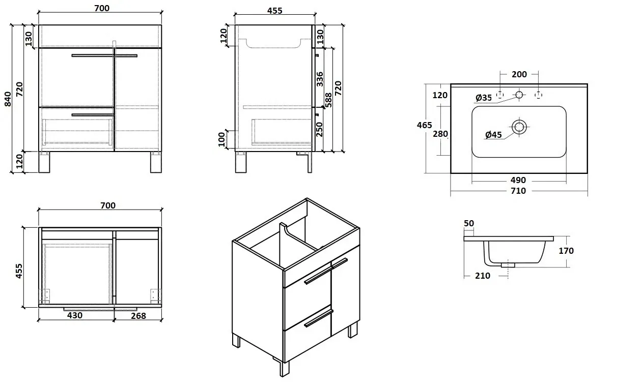 • Дизайн - современный, идеальное сочетание дизайна из двух ящиков и распашной дверцы