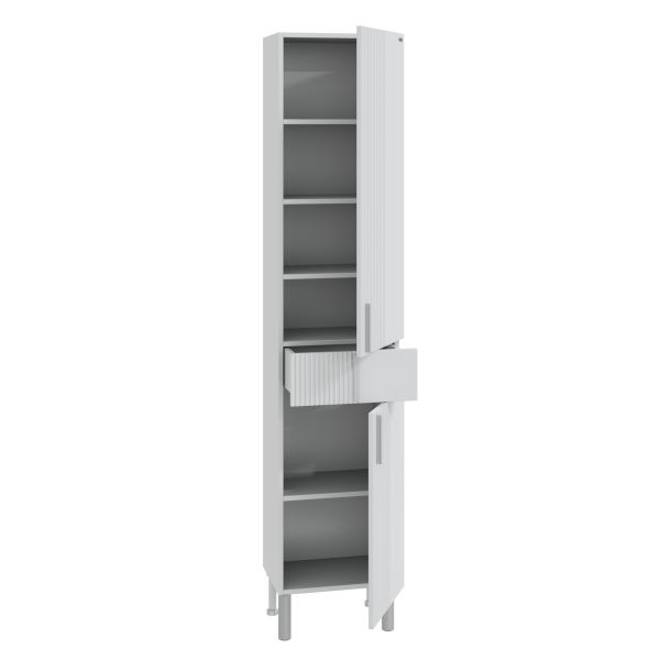 Шкаф-пенал для ванной Вега 60 напольный. Покрыт эмалью с вертикальной фрезеровкой фасадов.
