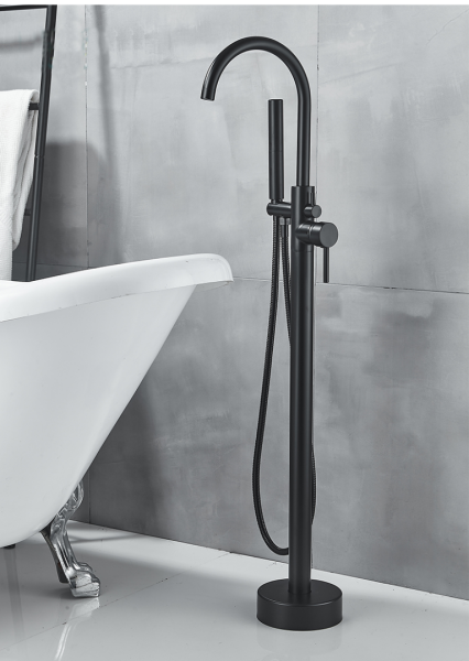 Смеситель BRAIES Matt black напольный для отдельностоящей ванны BOCH MANN BM8921Картридж SCCДушевая штанга: ЛатуньДушевой шланг 1,5 м