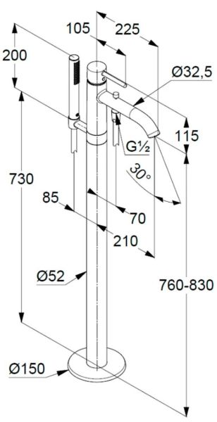 - монтаж у отдельно стоящих ванн