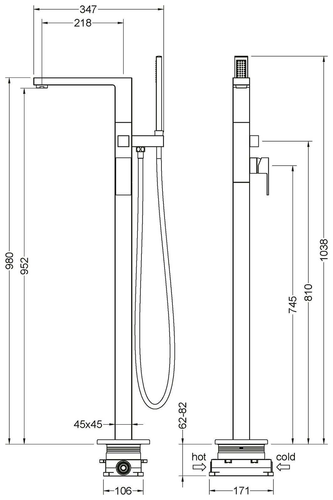 • Длина излива, см: