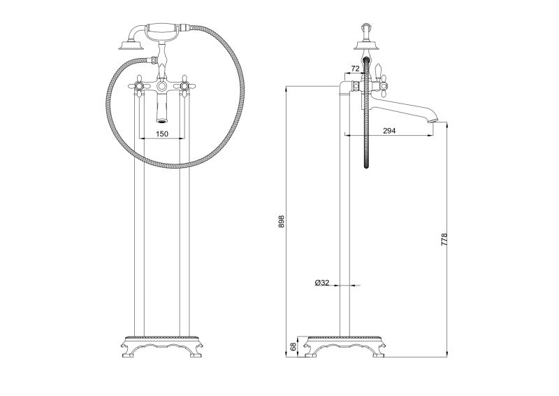Смеситель для ванны напольного монтажа WONZON & WOGHAND RETRO, Брашированное золото (WW-88649020-BG)