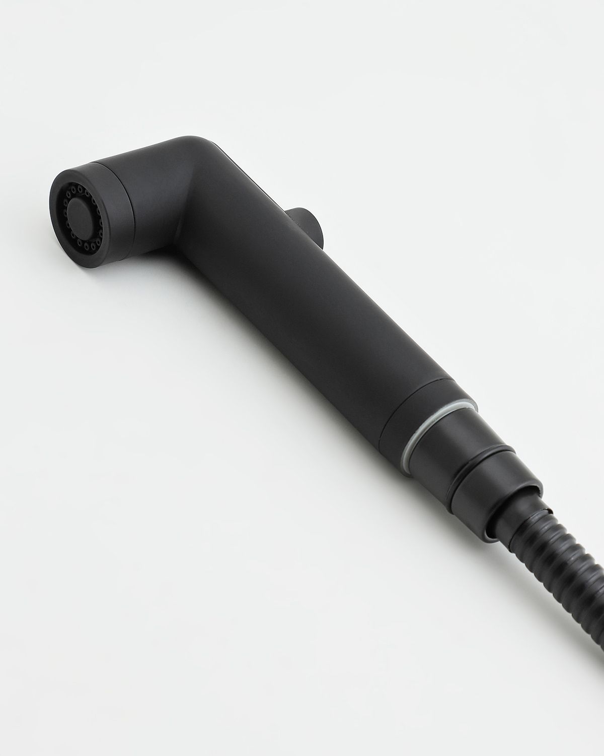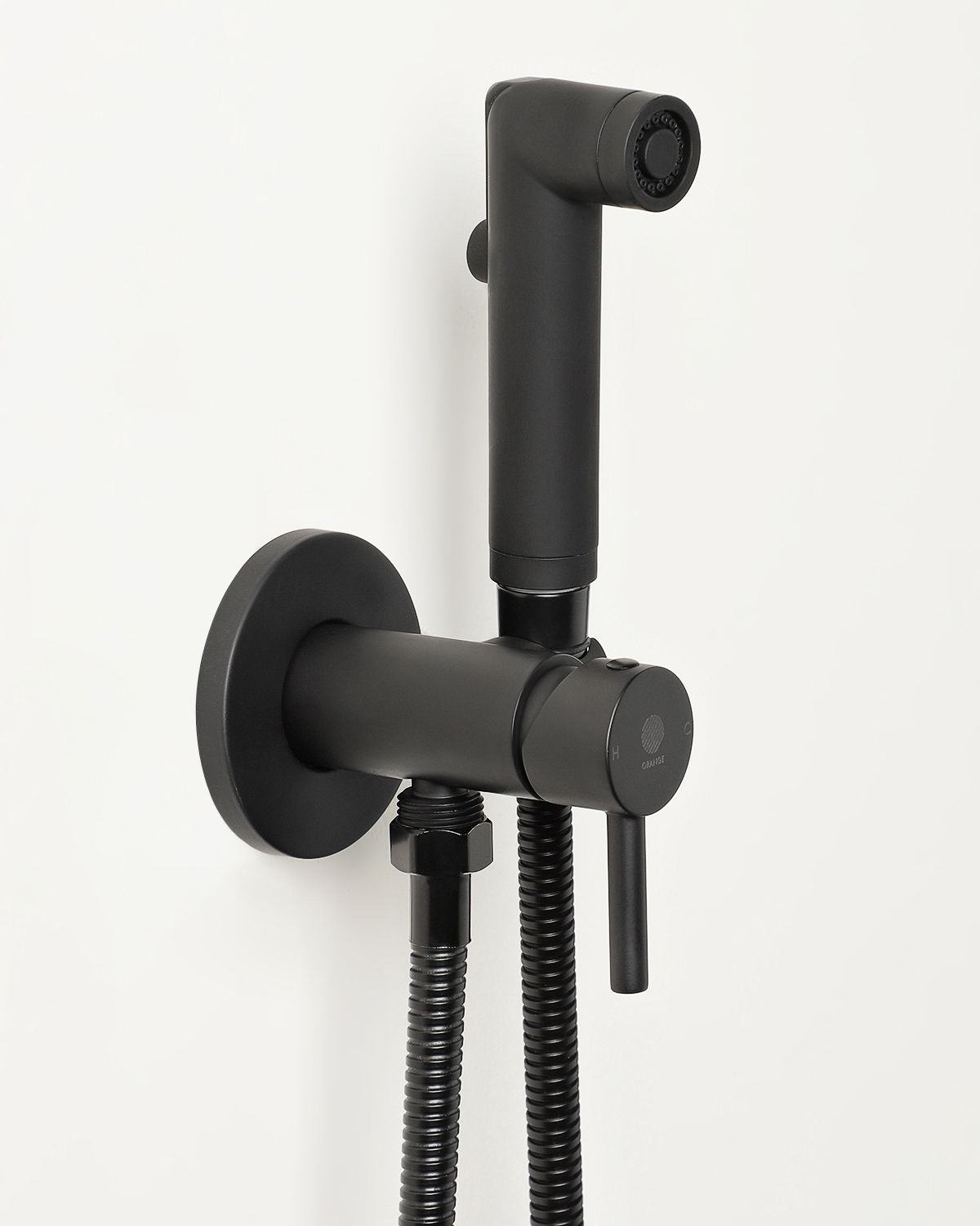 Смеситель скрытого монтажа с гигиеническим душем Orange Karl заинтересует всех, кто ценит строгие, четкие линии и интерьеры в стиле минимализм. Небольшой встраиваемый корпус занимает мало места и не требует больших углублений в стене. Декоративная розетка диаметром 8 см аккуратно закроет монтажные отверстия. Легкое управление напором и температурой воды подарит фирменный картридж Orange. Уход за покрытием в цвете матовый черный прост – достаточно регулярной очистки мягкой салфеткой. В комплекте гигиенический набор - гиг.лейка d 26 мм (1 режим струи) и шланг (120 см, в металлической оплетке, с защитой от перекручивая), держатель лейки на корпусе смесителя.