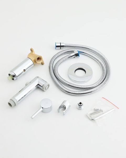 Смеситель скрытого монтажа с гигиеническим душем Orange Karl заинтересует всех, кто ценит строгие, четкие линии и интерьеры в стиле минимализм. Небольшой встраиваемый корпус занимает мало места и не требует больших углублений в стене. Декоративная розетка диаметром 8 см аккуратно закроет монтажные отверстия. Легкое управление напором и температурой воды подарит фирменный картридж Orange. Уход за хромовым покрытием прост – достаточно регулярной очистки мягкой салфеткой. В комплекте гигиенический набор - гиг.лейка d 26 мм (1 режим струи) и шланг (120 см, в металлической оплетке, с защитой от перекручивая), держатель лейки на корпусе смесителя.