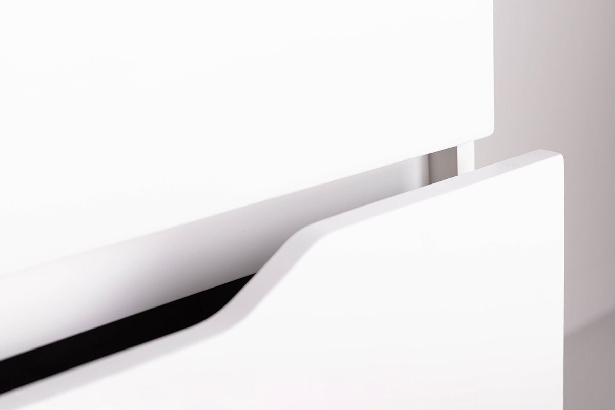 Тумба Orange Line отличается современным дизайном. Изготовлена из МДФ высокой плотности. Мебель покрыта пленкой ПВХ с технологией Soft Touch — ламинация класса премиум, с повышенными тактильными свойствами. Пленка обеспечивает дополнительную защиту мебели от влаги и перепадов температуры. На ящики установлены комплекты скрытых направляющих Hettich, обеспечивающие полное выдвижение и имеющие встроенную систему плавного и бесшумного закрывания. Дополнительно в верхнем ящике установлен органайзер для мелких принадлежностей. Исполнение - матовое.