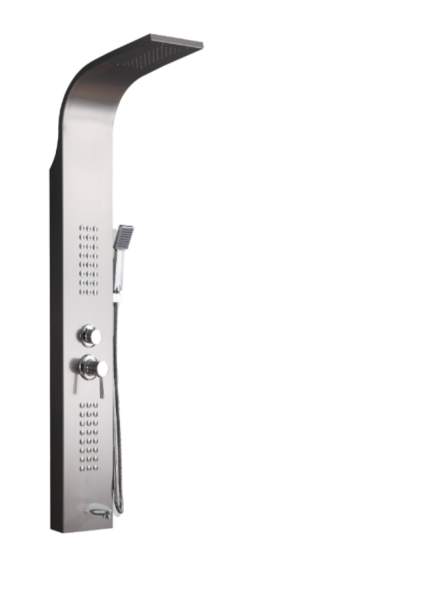 Комплектация: душевая панель, душевая лейка, смеситель, шланг для душа, верхний душ, крепеж, инструкция