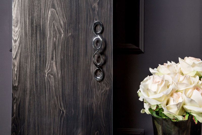 - Внутренняя сторона задней стенки шкафа-пенала отделана вручную эко-кожей с маркировкой Armadi Art и строчкой ручной работы