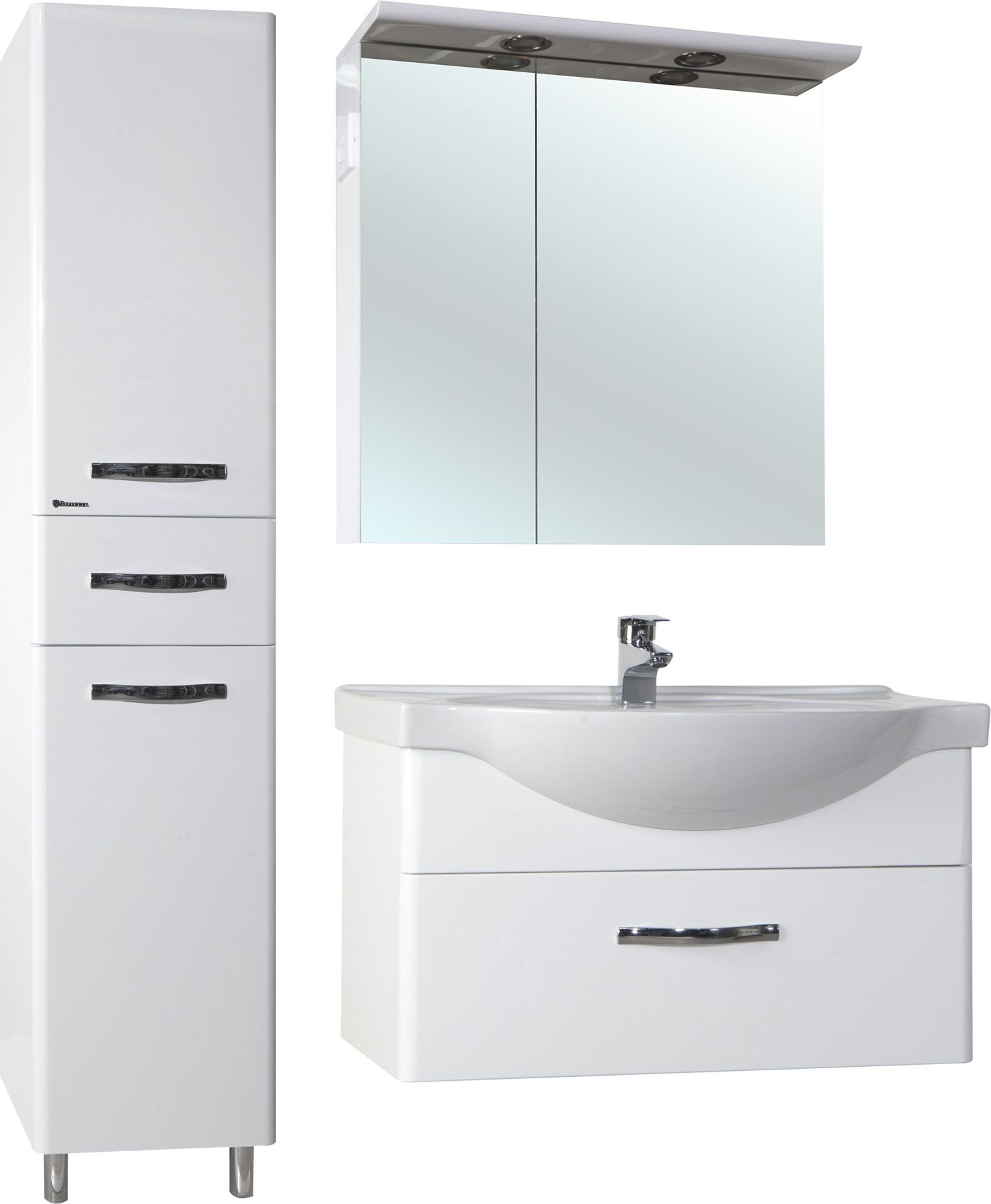 Для ванных комнат, где важно сочетание стиля и практичности. Глянцевый белый цвет визуально расширяет пространство, а продуманная конструкция обеспечивает удобное хранение.