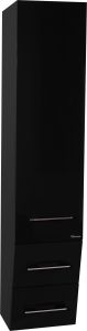 Пенал предлагает продуманную систему хранения, позволяя упорядочить все банные принадлежности, косметику и аксессуары, освободив пространство и даря ощущение идеальной чистоты. Механизм плавного закрывания дверей обеспечивает тихую и комфортную эксплуатацию, а хромированная фурнитура эффектно подчеркивает глубину черного цвета фасада.