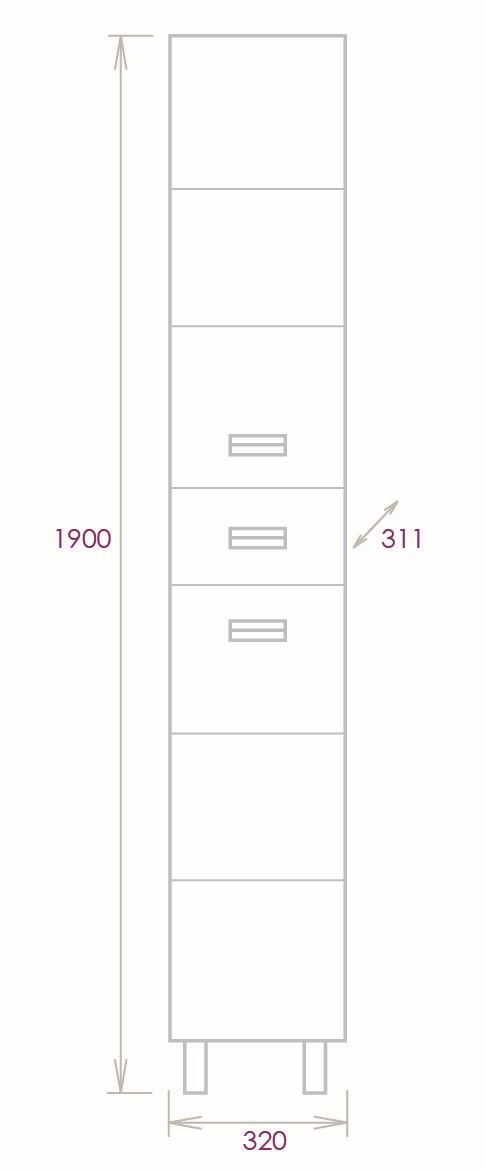 Корпус пенала выполнен из ЛДСП, фасад - из МДФ в пленке, устойчивых к механическим воздействиям, перепадам температур и высокой влажности.