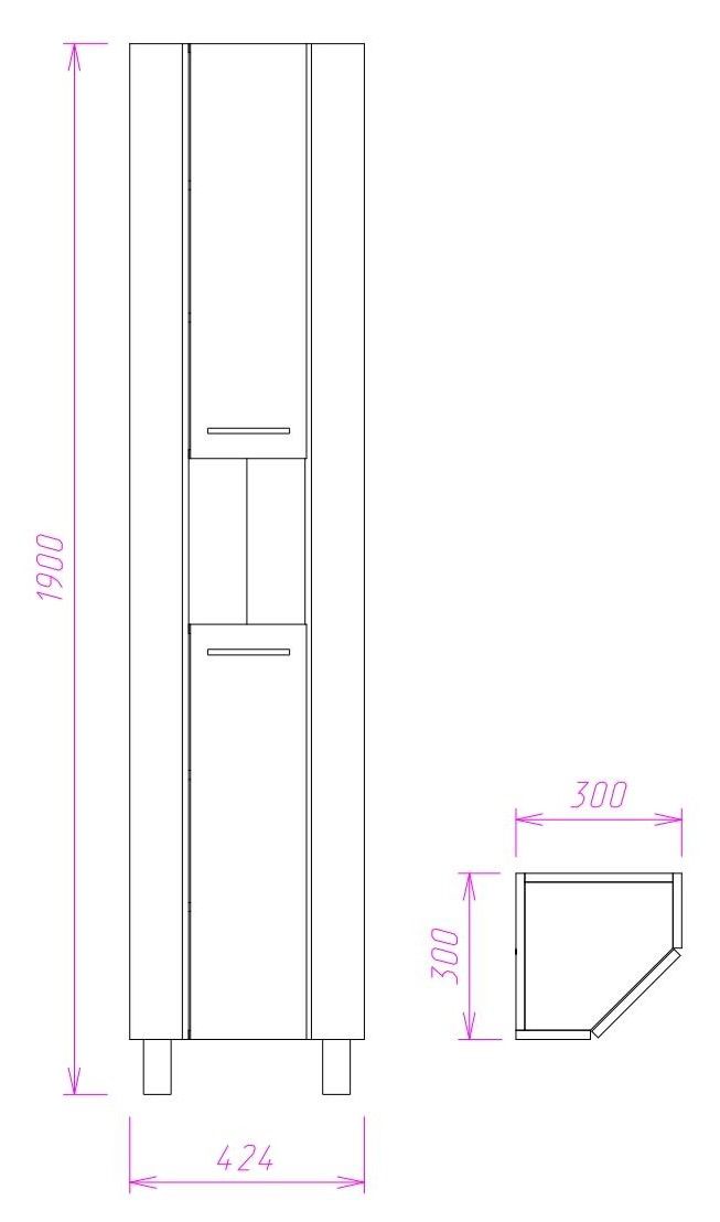 Пенал имеет универсальную ориентацию: при установке верх и низ пенала можно менять местами, а дверцы могут открываться как влево, так и вправо.