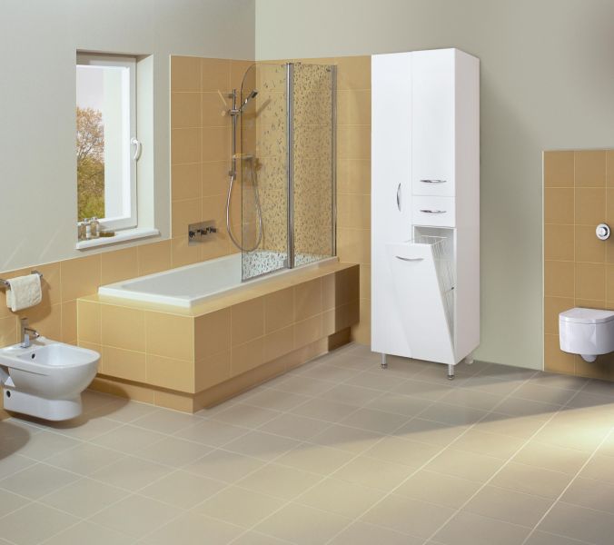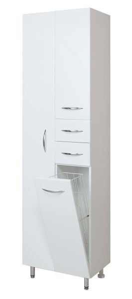 Напольный пенал для ванной комнаты с корзиной для белья Onika МОДЕРН 52, благодаря простому минималистичному дизайну и белому глянцевому фасаду, подойдет под любой интерьер ванной комнаты.