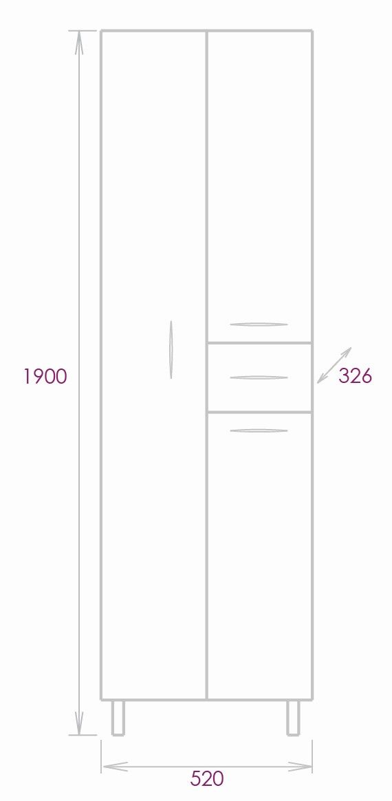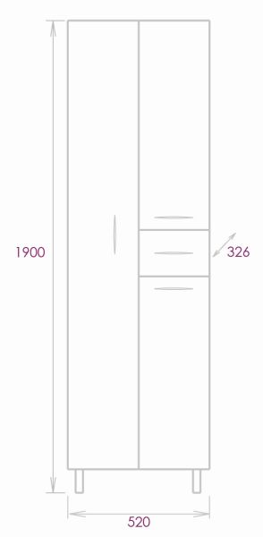 Конструкция пенала предусмотрела огромное пространство для хранения, в котором поместятся все необходимые вещи: слева - большое отделение сверху, небольшой выдвижной ящик посередине и отделение с корзиной для белья снизу , справа - место для хранения халатов. Размер бельевой корзины: 180*240*650. Дверцы оснащены механизмом плавного закрывания, а ящик - направляющими полного выдвижения.