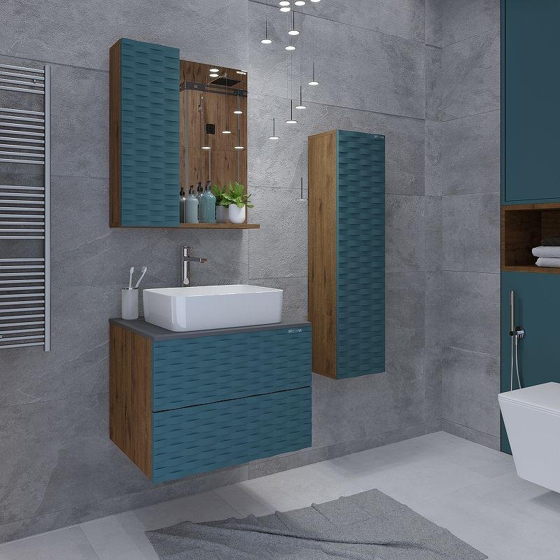 Подвесной пенал Альба- 30 смМатовая фактура в цвете Бриз с 3D рисунком безупречно сочетается с фактурой под дерево и позволяет пеналу органично вписаться в интерьер ванной комнаты.