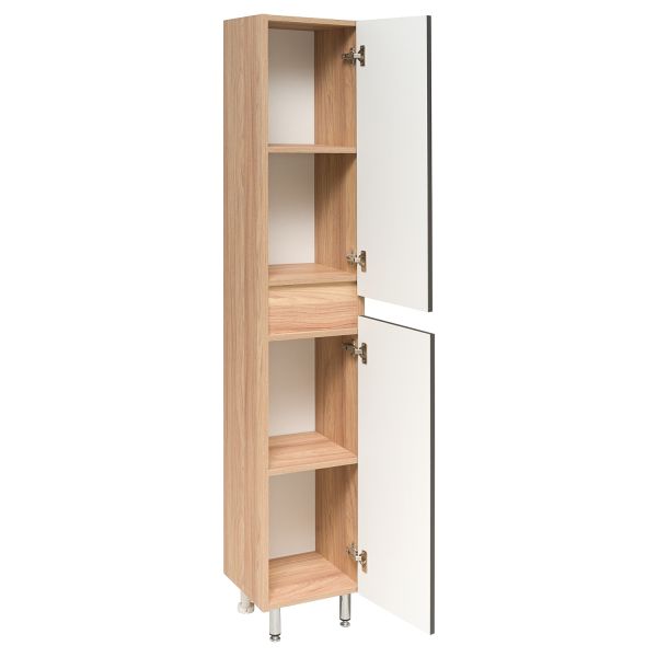 Шкаф пенал для ванной RUNO ЛАДА - модное и оригинальное решение для бюджетного оснащения ванной комнаты. Шкаф для ванной (напольный) выполнен в двух цветах - классическом белом и в стильном цвете - графит/серый дуб, идеально впишется в любой интерьер ванной комнаты. Шкаф в ванную имеет две распашные дверцы, в нижнем и верхнем отделениях по одной встроенной полке. В комплекте идут петли со встроенным доводчиком, 2 хромированные и 2 пластиковые ножки. Мебель для ванной RUNO - красота и практичность в мелочах!