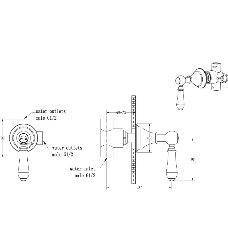 Переключатель потоков Boheme Brillante хром 624