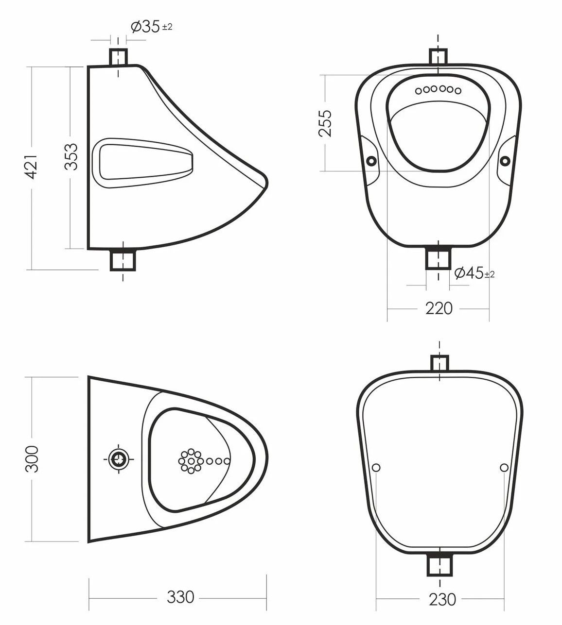 Эргономичность конструкции и строгость формы характеризуют писсуар ОРИОН. Он абсолютно подходит и для частных, и для общественных пространств.