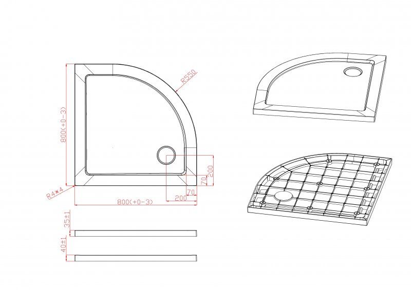 Форма: четверть круга, радиусная