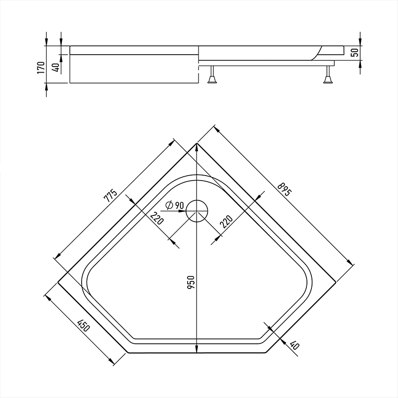 Поддон для душа Alex Baitler 90х90 ER9017V-1 БелыйДля укрепления поддонов применяется современная технология – укрепление стеклоровингом. Это позволяет добиться высоких показателей прочности, отличных тепло- и звукоизоляционных свойств готовых изделий. Отсутствие в составе покрытия токсичных компонентов гарантирует высокую степень экологичности и безопасности. Усиление дна: влагостойкое ДСП 16 мм. Каркас: сборно-разборный, стальной с порошковой (молотковой) покраской.