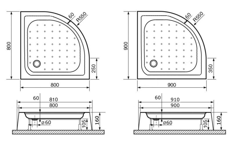 Акриловый поддон для душа полукруглый R-550 Подробнее