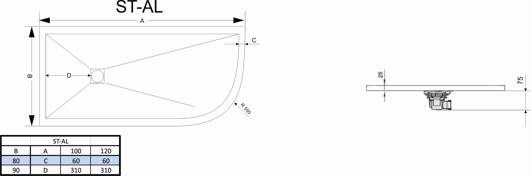 Поддон ассиметричныйиз искусственного камня RGW ST/AL-0128G 800х1200х25 Подробнее