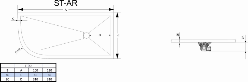 Поддон ассиметричный из искусственного камня RGW ST/AR-0128W 800х1200х25 Подробнее