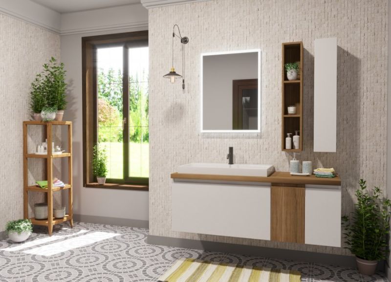 Коллекция Malibu выполнена в эко-стиле из экологичных материалов, что дает возможность быть ближе к природе. Подвесная тумба выглядит естественно и натурально. Её украшает большая столешница из массива дерева, устойчивая к влаге. Поверхность столешницы гладкая и прочная. Накладная раковина выполнена из литьевого мрамора. В тумбе расположены 2 вместительных ящика, один из них выполнен из массива дерева, который полностью повторяет текстуру столешницы. Malibu придаст невероятно уютную и гармоничную атмосферу ванной комнате. Мебель выполнена из влагостойкого ЛДСП и качественного MDF с использованием эмали RENNER (Италия). Ящики снабжены системой плавного закрывания. Для мебели используется фурнитура Samet (Турция).