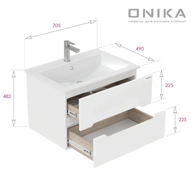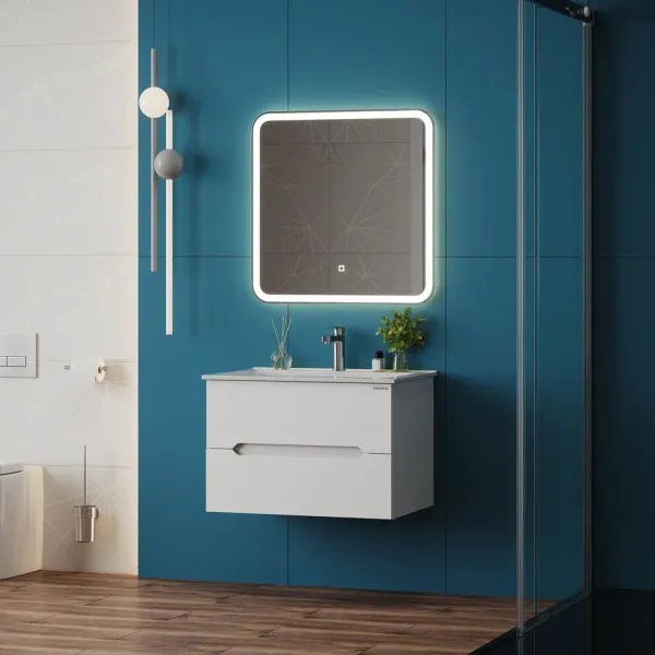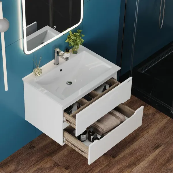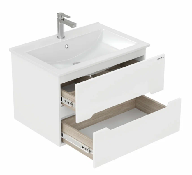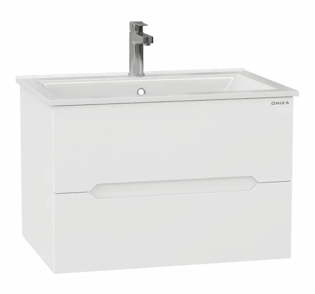 Подвесная тумба под раковину Onika Айленд 70 сочетает в себе стильный минималистичный дизайн, белую глянцевую поверхность и высочайшее качество исполнения.