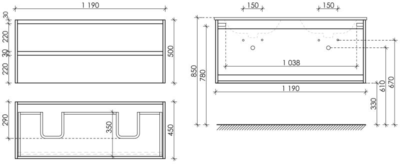 Подвесная тумба под двойную раковину Sancos Libra LB120-2ECH 120см дуб чарльстон купить
