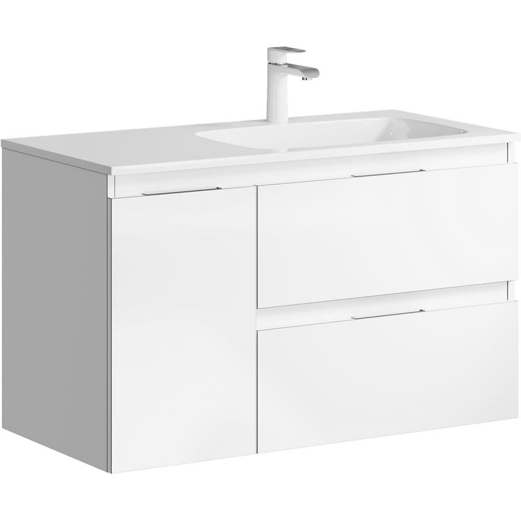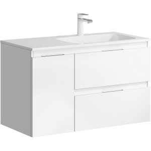 Подвесная тумба под раковину Aqwella Accent ACC0109RW 90 смПодвесная тумба с двумя ящиками и одной дверью в белом цвете с умывальником из литьевого мрамора (чаша справа)