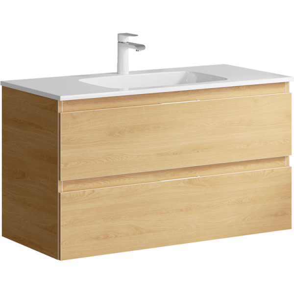 Подвесная тумба под раковину Aqwella Accent ACC0110DZ 100 смПодвесная тумба с двумя ящиками в цвете дуб золотой с умывальником из литьевого мрамораMalaga 1000 Арт. Mal.10.04.D