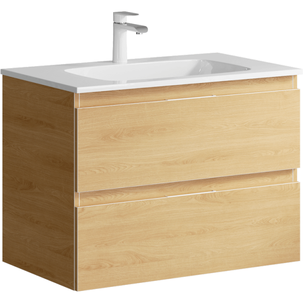 Подвесная тумба под раковину Aqwella Accent ACC0175DZ 75 смПодвесная тумба с двумя ящиками в цвете дуб золотой с умывальником из литьевого мрамора