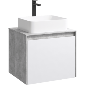 Подвесная тумба под раковину Aqwella Mobi MOB0106BS+MOB0706W 60 смПодвесная тумба 60 см с двумя ящиками: основной и внутренний, скрытый за фасадом. Цвет бетон светлый/белый; с умывальником