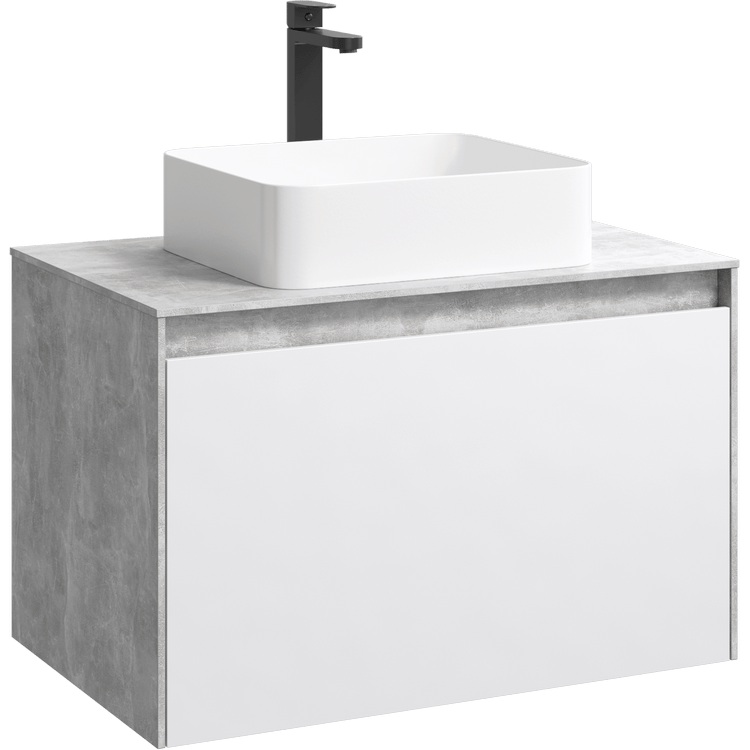 Подвесная тумба под раковину Aqwella Mobi MOB0108BS+MOB0708W 80 смПодвесная тумба 80 см с двумя ящиками: основной и внутренний, скрытый за фасадом. Цвет бетон светлый/белый; с умывальником