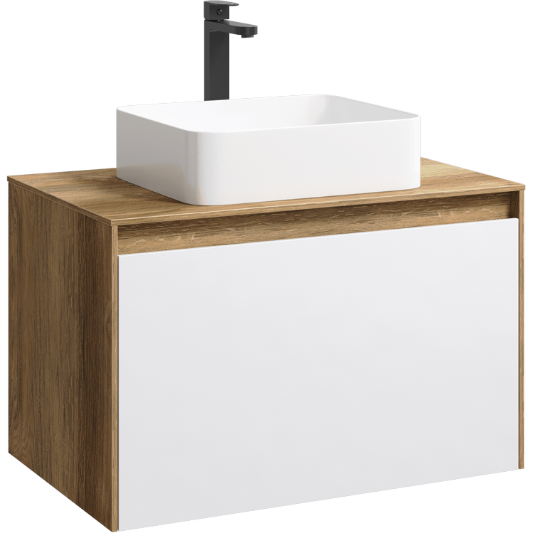 Подвесная тумба под раковину Aqwella Mobi MOB0108DB+MOB0708W 80 смПодвесная тумба 80 см с двумя ящиками: основной и внутренний, скрытый за фасадом. Цвет дуб балтийский/белый; с умывальником