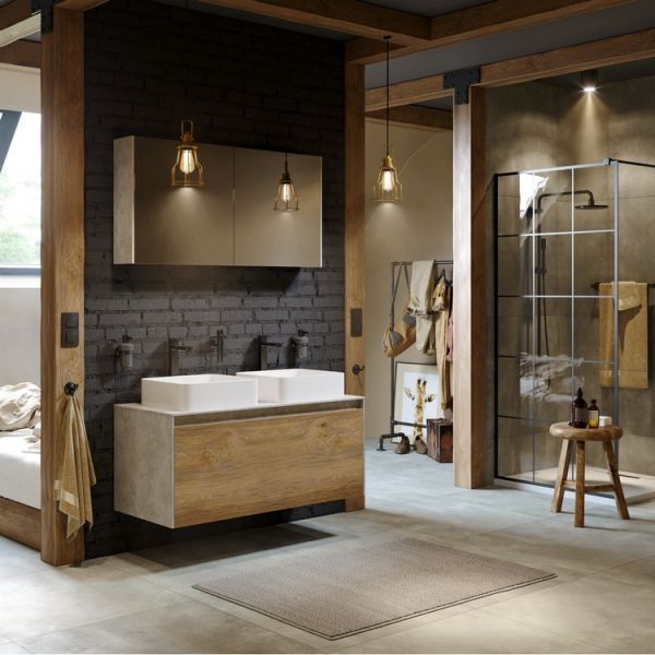 Подвесная тумба под раковину Aqwella Mobi MOB0110BS+MOB0710BS 100 смКоллекция Mobi гармонично вписывается в интерьер любой современной ванной комнаты. Так как существует возможность комбинировать фасады и корпуса трех цветов: бетон светлый, дуб балтийский и белый глянец.Подвесная тумба 100 см с двумя ящиками: основной и внутренний, скрытый за фасадом. Цвет бетон светлый; с умывальником