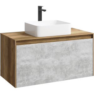 Подвесная тумба под раковину Aqwella Mobi MOB0110DB+MOB0710BS 100 смПодвесная тумба 100 см с двумя ящиками: основной и внутренний, скрытый за фасадом. Цвет дуб балтийский/бетон светлый; с умывальником