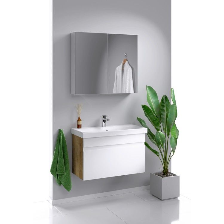 Подвесная тумба под раковину Aqwella Smart SRT0108DB 80 смПодвесная тумба с одним ящиком, цвет дуб балтийский с умывальником