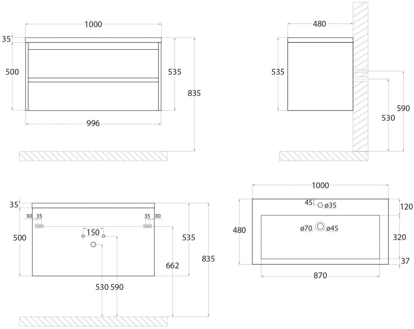 Тумба под раковину Art&Max выполнена в современном стиле и прекрасно впишется в интерьер любой ванной комнаты. Благодаря подвесной конструкции изделие не занимает много места, позволяет экономить пространство и облегчает уборку. Модель оснащена двумя выдвижными ящиками с доводчиками. Фасад изделия выполнен из ЛДСП.Тумба может использоваться вместе с раковиной AM-LAV-1000-MR-A.Раковина и смеситель в комплект поставки не входят и приобретаются отдельно.Особенности: