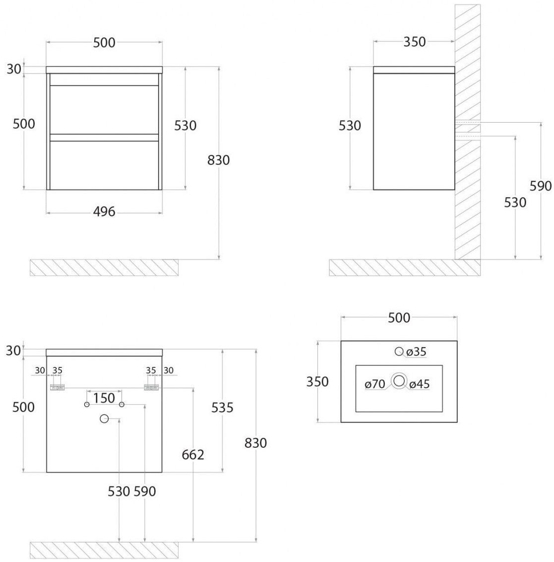 • Рекомендуемая высота от пола: 830 мм